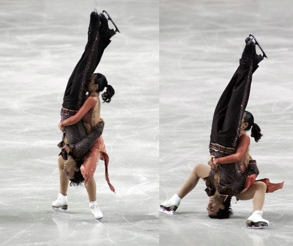 Since the Winter Olympics are going on now, I figured this would be the ideal time to have an Olympic-themed caption contest. Ironically, just today was the couples ice skating finals, which goes along with the picture I have for this these. This photo is a collage of two pictures, and it features some special move that didn’t turn out right, unless the WWE / WWF is combined with ice skating. I don’t know any more context, but that’s okay — you get to fill in the missing details. Write a caption explaining what’s going on, from whatever point-of-view you’d like (e.g., the skaters, their coach, the judges, announcers, analysts, crowd, etc.).