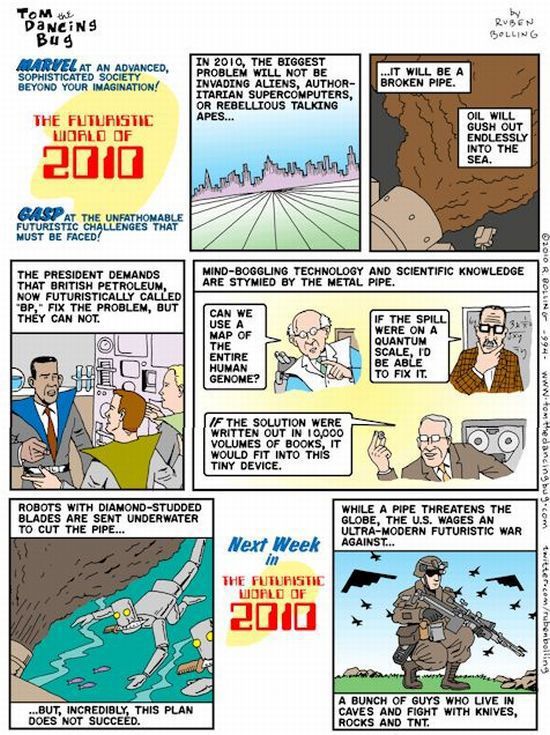 For years, scientists and science fiction writers have wondered what life in the future would be like. Many made predictions for the year 2000 and the next few years after. While we’re technologically advanced in a number of areas now in 2010, there are some areas we’re so far behind where we should be. This comic illustrates that well.