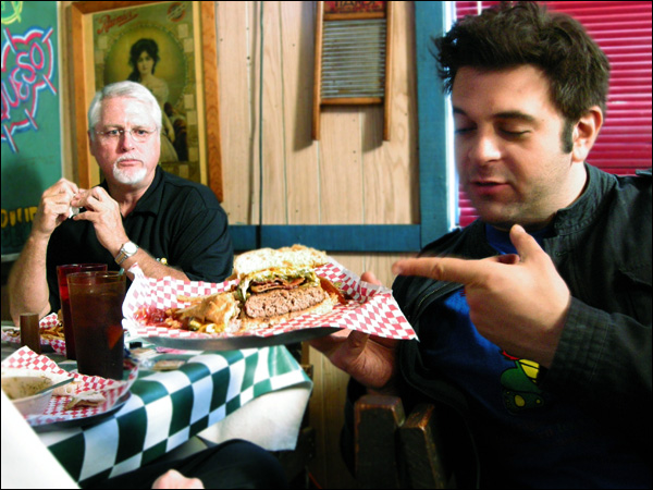 A new week, and a new caption contest — they just seem to go together, don’t they? Anyway, this week’s picture features a man pointing at a plate of food. He looks kinda like Adam Richman of Man v Food fame, but I’m not for sure if it is. The food appears to be some type of cheeseburger, but that is open to your interpretation.
