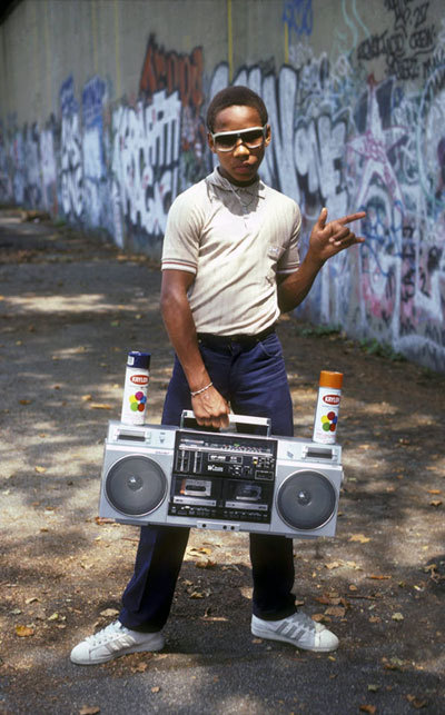 It’s now time for our weekly caption contest. This week’s photo features a boy holding a dual-cassette jambox / boombox, with a couple of cans of spray paint. Behind him is a prodigious amount of graffiti. The young man is also making some attempt at being “cool”, wearing sunglasses and making some sign / symbol with his hand. As always, there is no factual context behind this picture, so you get to make it up. You can explain what he’s thinking and/or doing, what his peers think, or what has happened or is about to happen. Basically, you can make up whatever you want. The only rules are: keep it clean and make it funny. Have fun!