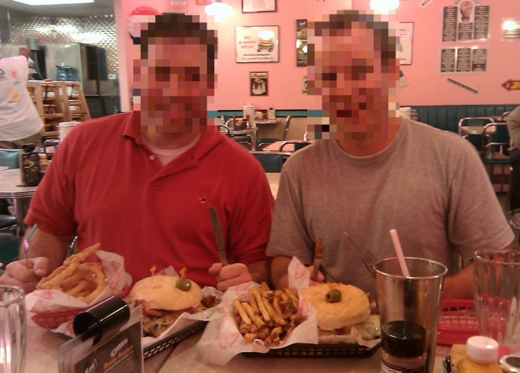 Two of the guys in our group attempted and both conquered the burger, plus some fries and/or onion rings, and a regular milkshake. While it’s an achievement worthy of recognition (hence the post), one of them requested his secret identity remain secret (probably so his wife wouldn’t know he ate the whole thing).