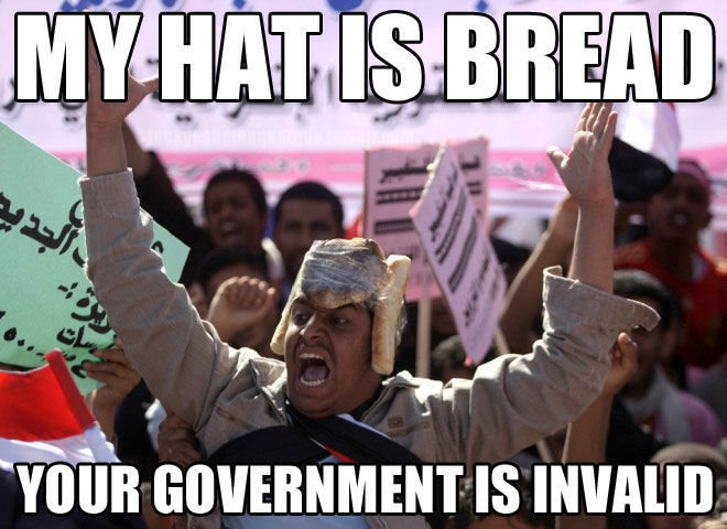 Sometimes you can’t predict what will be viral next. For example, someone can just show up to a protest with bread taped to their head and become an Internet meme. He was just trying to “protect” himself against makeshift projectiles, so some protesters made makeshift “armor”. Now this guy is known as Bread Helmet Man, and he’s appeared in “photographs” all around teh internets… A few examples…