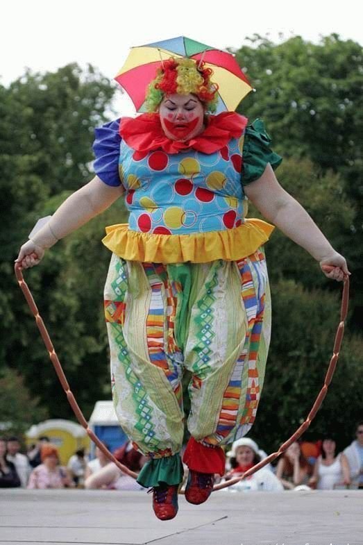 The circus is in town! Okay, not literally, but that looks to be the case for this week’s caption contest. There’s a woman dressed in a clown suit, and she’s jumping rope with hot dogs. It’s up to you to figure out a story / joke / pun for this picture. Remember, it can be from the clown’s perspective, or the people watching, or the employers, or anyone. Just keep it clean. If you don’t have anything to add, you can still enjoy the comments of others.