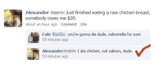 That subject could go a couple of ways, and I will take both paths in one post… or at least try and see what happens. First, there’s already randomness and humor on Facebook. People post some crazy things, displaying their ignorance / stupidity for all their friends to see. Case in point: