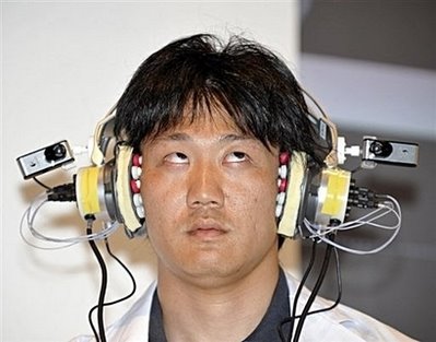 This week’s photo features a man with some strange contraption on his head. I have no idea what the actual context is, so just make something up. (For ideas, you can make the man be whoever you want, or make up what the device does, or imagine what someone might say to him.)