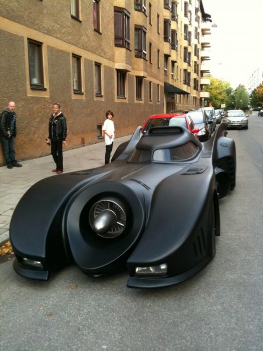 A Swedish man created a do-it-yourself (DIY) Batmobile.   He started with a 1973 Lincoln Continental chassis, and added voice recognition tech, rear-view cameras, satellite navigation, and of course machine guns.  The engine puts out 700 horsepower.   He also included a DVD player and a plasma TV, for when you’re taking a break from saving the world.   (But how many cupholders does it have?)