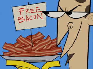 Maybe this is just another sign that the Buffet o’ Blog staff should open our own restaurant.  If we had the required funding, I have no doubt that we could create one of the most awesome restaurants ever.  We have so many great ideas.  Plus, we’d make sure we didn’t run out of bacon!  If our stockpile was ever in danger of reaching its expiration date, we’d cook it up and give extra bacon to the customers.  Or we could put up a sign outside that said “FREE BACON!”.  I guarantee that would bring in some extra customers!
